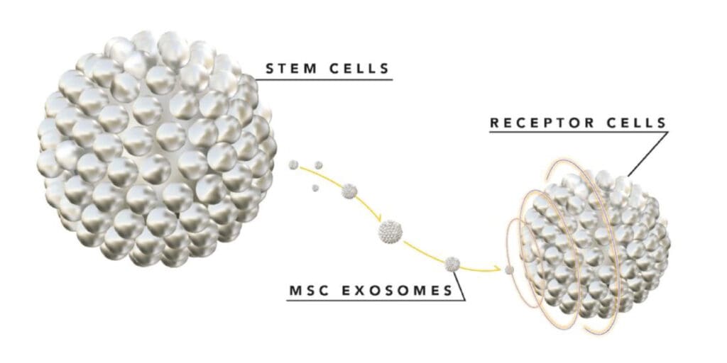 Available research indicates that exosomes possess anti-inflammatory properties and can potentially be used to support the regeneration of aging or damaged tissues by delivering rejuvenating signals to the target cells. MSCs are naturally present in our bodies until a certain age, and by replenishing our bodies with them, we have the capacity to accelerate the healing process of injuries by promoting tissue repair, modulating inflammation, and improving immune responses.